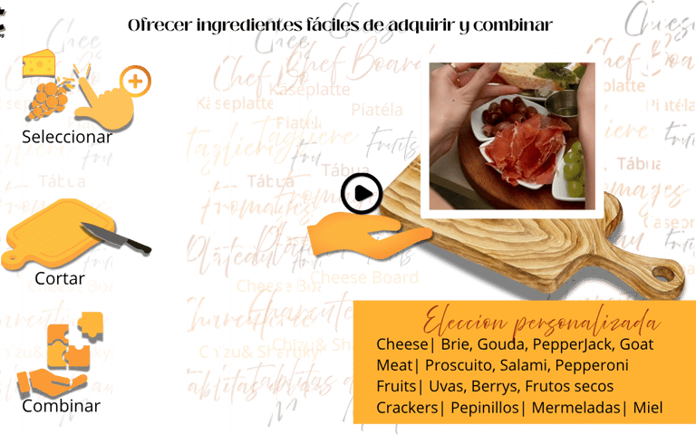 Creamos delicadas tablitas de charcutería que celebran la unión de culturas a través de ingredientes seleccionados con amor y dedicación.